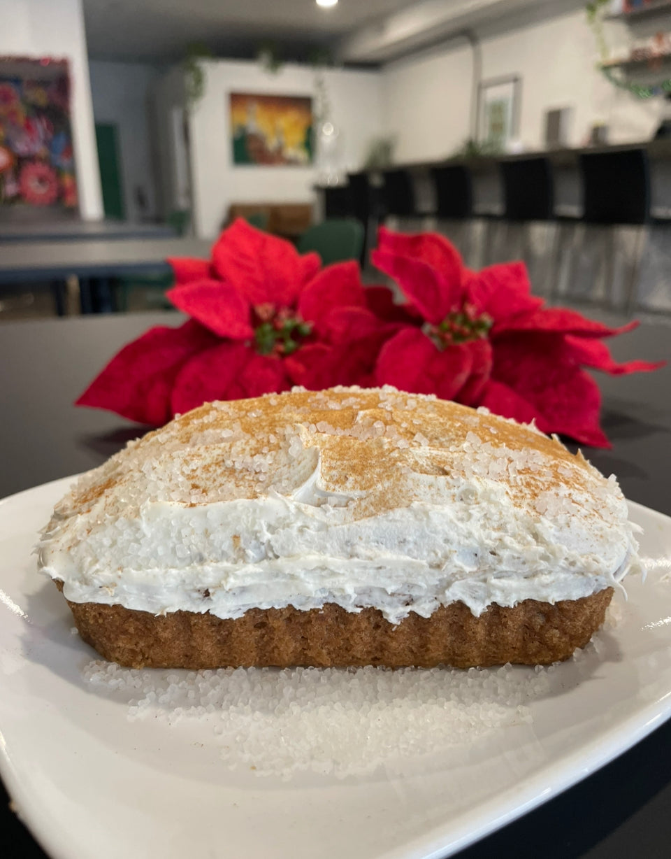 Mini Gingerbread Cake! A delicious, Moist little loaf of goodness filled with flavors of cinnamon, ginger and molasses with a perfect amount of spice and sweet! Then topped with an amazing Maple Cream Cheese frosting for the perfect touch of sweetness . These Mini Gingerbread Cakes are the perfect addition to this Holiday Season! This is a Super Limited Release with Only 50 Boxes Available!