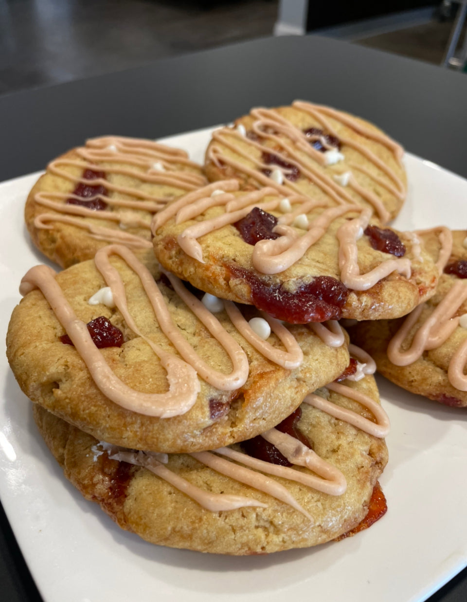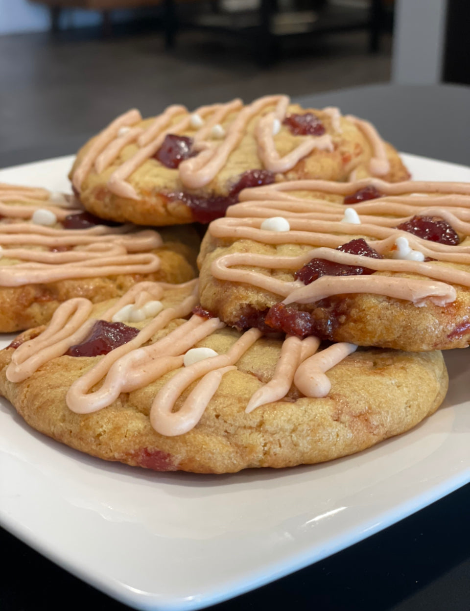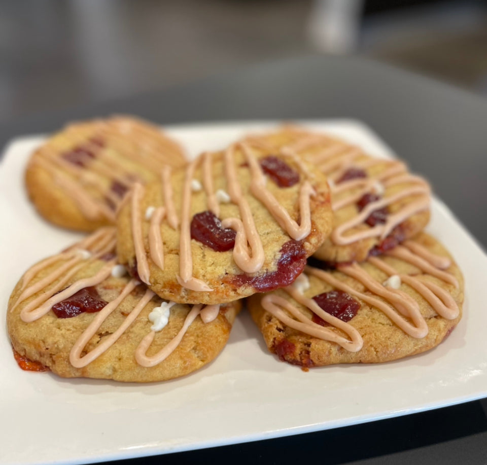 Guava Shortbread Cookie! Buttery, soft, and filled with guava jam topped with white chocolate chips then drizzled with infused guava icing that makes for a delicious treat! These Guava Cookies were a part of our most recent Munchies Sampler Box and due to the numerous requests from customers we decided to release this as a solo box! This is a Super Limited Release with Only 30 Boxes Available.